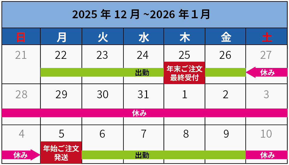 年末年始休業期間:2025年12月27日〜2026年1月4日